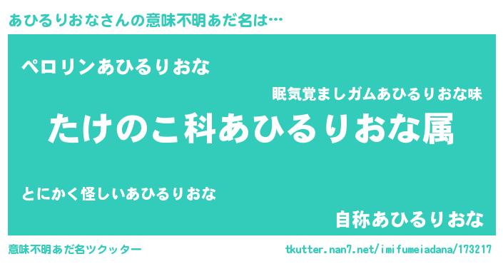 | 料理風あだ名 | 『あひるりおなごはん』 |