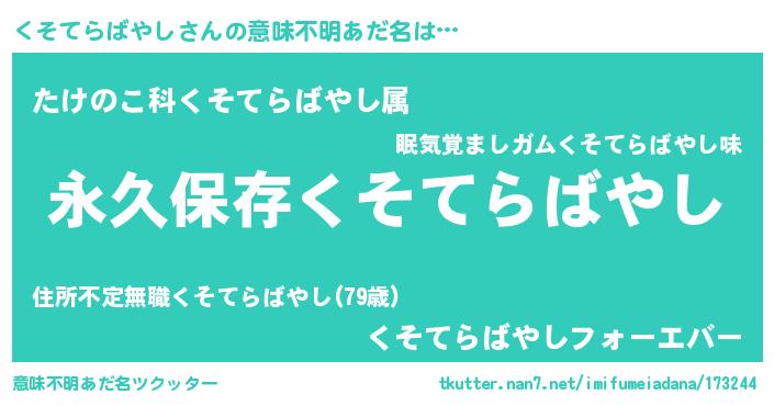 | 胡散臭い通販商品みたいなあだ名 | 『来世でも幸せになれる水素水…その名も「くそてらばやし」』 |