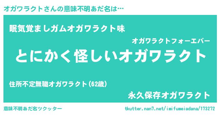 | 男性向けラノベタイトル風あだ名 | 『オガワラクトの嫁は女の子じゃないと思った?』 |