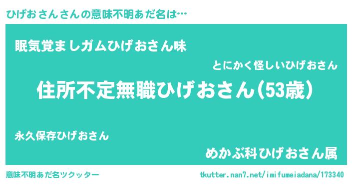 | ヒーロー風カッコイイあだ名 | 『仮面ヒゲダー』『愛の使者ひげおさん』 |