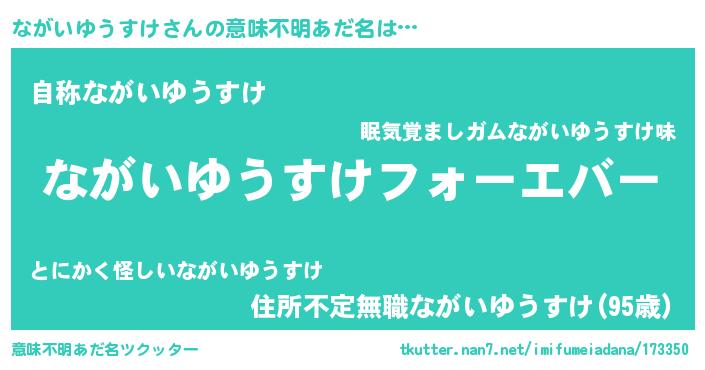 | 女子向けラノベタイトル風あだ名 | 『ながいゆうすけ伯爵の花嫁』 |