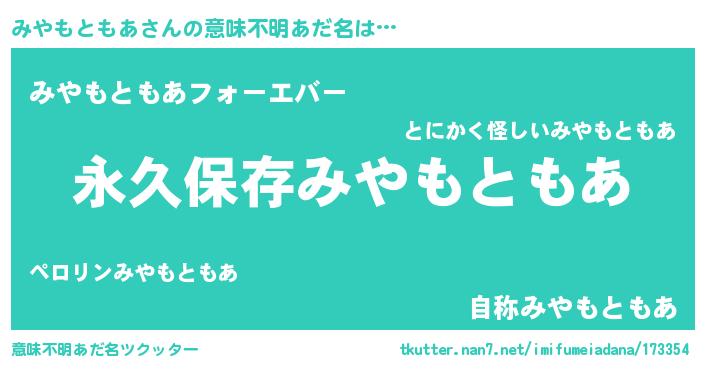 | ヘコむあだ名 | 『みやもともあ(笑)』『牛乳』 |