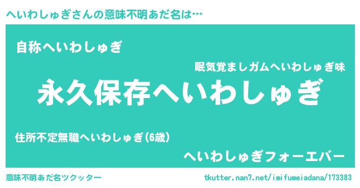 | 胡散臭い通販商品みたいなあだ名 | 『前代未聞の水素水…その名も「へいわしゅぎ」』 |