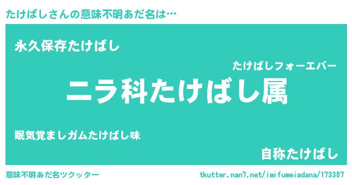| 胡散臭い通販商品みたいなあだ名 | 『前代未聞の健康食品…その名も「たけばし」』 |