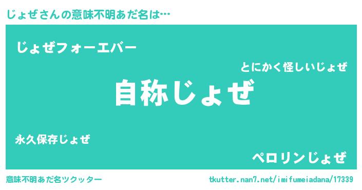 | 男性向けラノベタイトル風あだ名 | 『Re:じょぜから始める異世界生活』 |