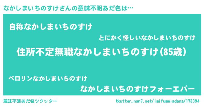 | 男性向けラノベタイトル風あだ名 | 『この素晴らしい世界になかしまいちのすけを!』 |