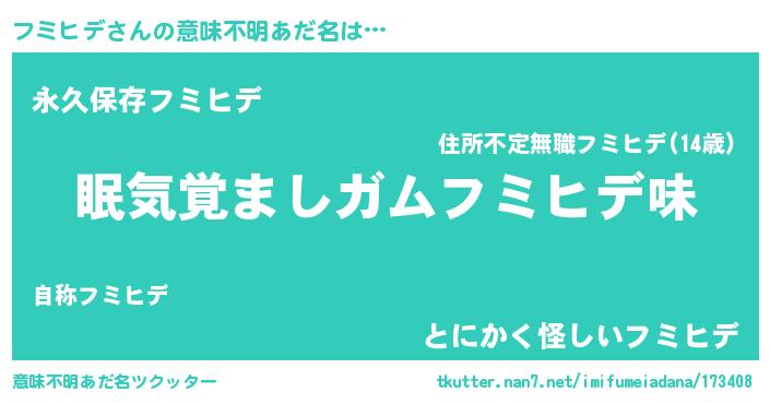 | ヘコむあだ名 | 『フミヒデ(小並感)』『フミぷりん』 |