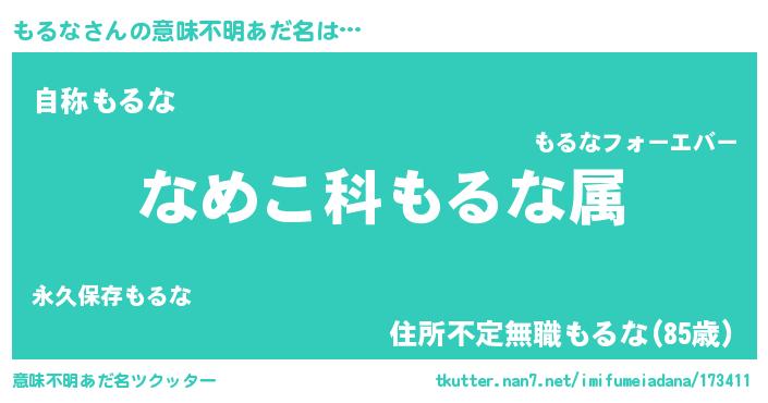 | ヘコむあだ名 | 『豆乳』『もるな(笑)』『もるにゅー』 |