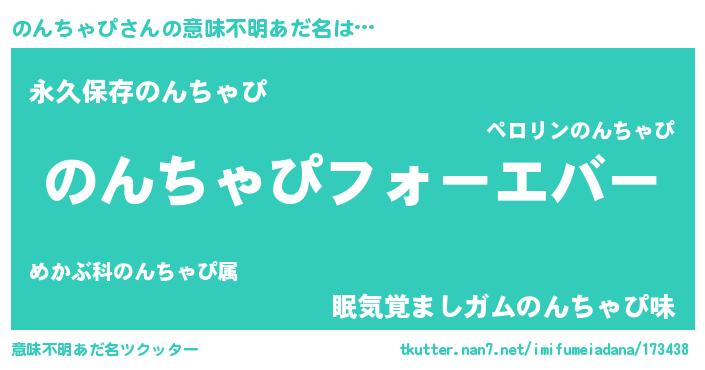 | 男性向けラノベタイトル風あだ名 | 『のんちゃぴに滅ぼされるだけの簡単なお仕事です』 |