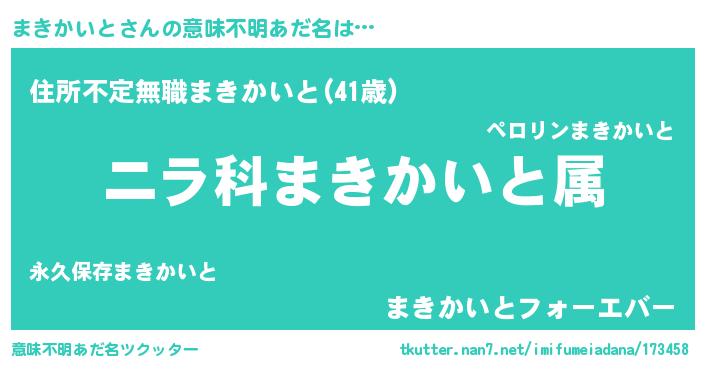 | 欧米人風あだ名 | 『まきかいと・ステッグマイヤー』 |