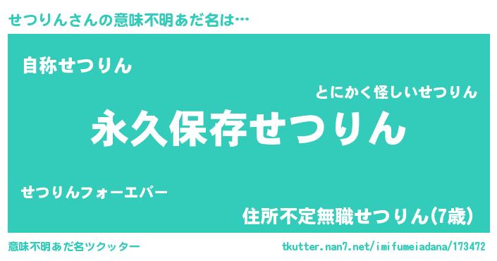 | 男性向けラノベタイトル風あだ名 | 『せつりんという概念が存在しない退屈な世界 』 |
