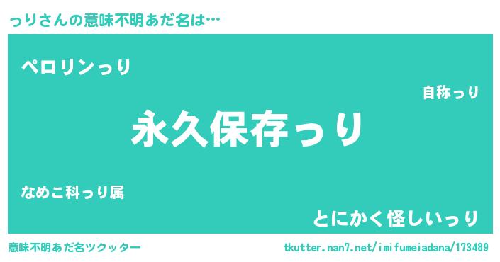 | 男性向けラノベタイトル風あだ名 | 『っりという概念が存在しない退屈な世界 』 |