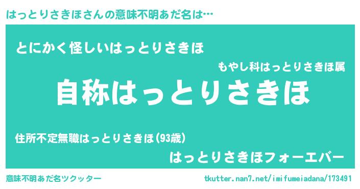 | ポケモン風あだ名 | 『ハッセウス』『ヒハットリサキホ』 |
