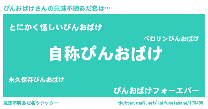| 男性向けラノベタイトル風あだ名 | 『Re:ぴんおばけから始める異世界生活』 |