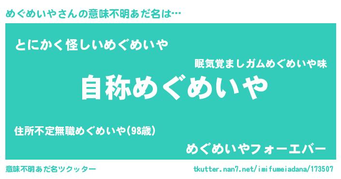 | 女子向けラノベタイトル風あだ名 | 『めぐめいやアンティーク』 |