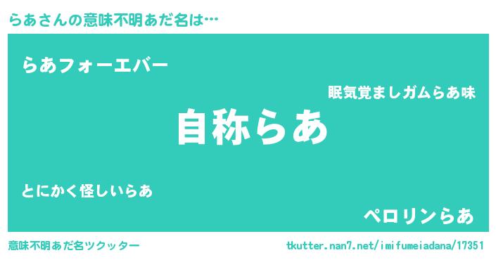 | 女子向けラノベタイトル風あだ名 | 『闇のらあ』『らあ伯爵の花嫁』 |