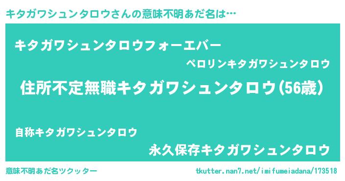 | ヘコむあだ名 | 『酢こんぶ』『キタにゅー』『キタお』 |