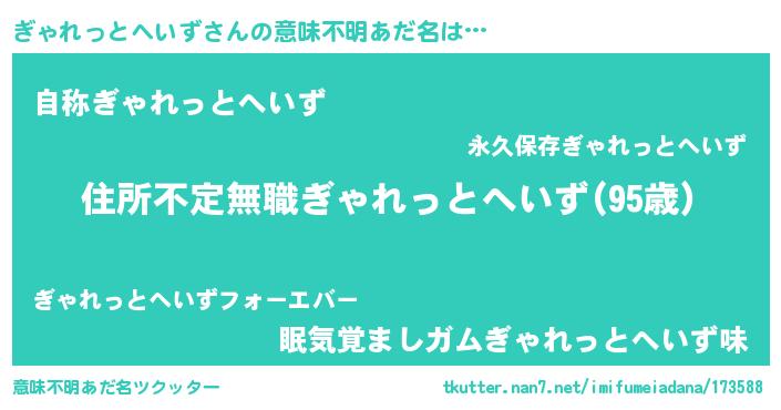 | 男性向けラノベタイトル風あだ名 | 『この素晴らしい世界にぎゃれっとへいずを!』 |