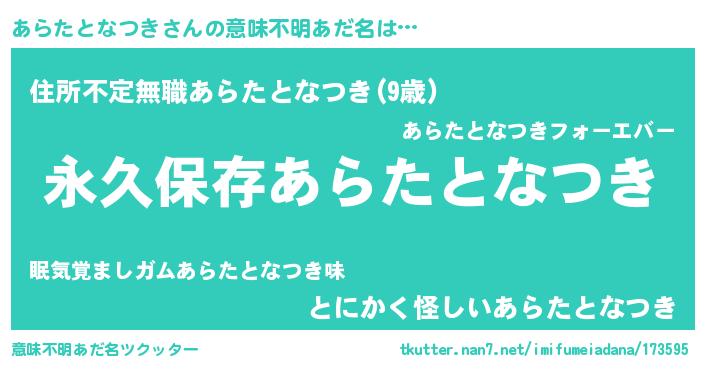| 胡散臭い通販商品みたいなあだ名 | 『来世でも幸せになれる健康食品…その名も「あらたとなつき」』 |
