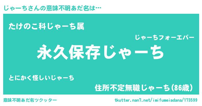 | 男性向けラノベタイトル風あだ名 | 『じゃーちという概念が存在しない退屈な世界 』 |