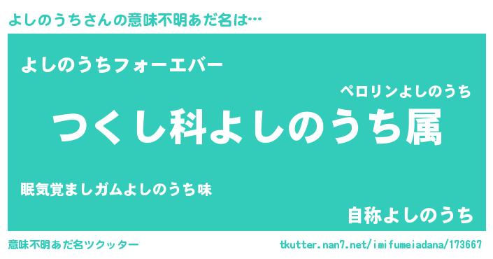 | 男性向けラノベタイトル風あだ名 | 『うちのよしのうちが世界を掌握している!』 |