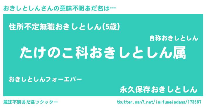 | 欧米人風あだ名 | 『アンジェラ・おきしとしん』 |