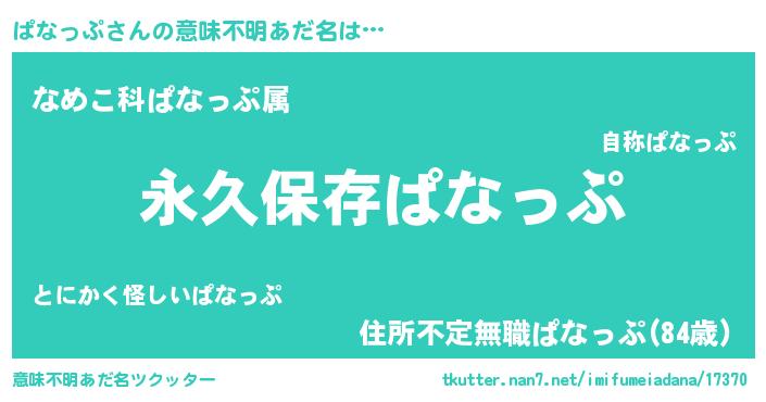 | 男性向けラノベタイトル風あだ名 | 『ぱなっぷという概念が存在しない退屈な世界 』 |