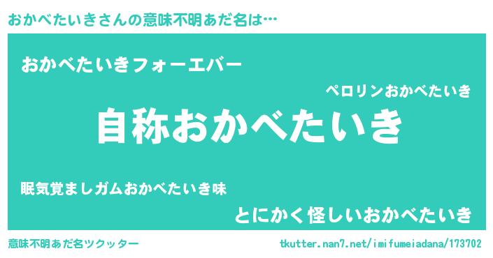 | 欧米人風あだ名 | 『アンジェラ・おかべたいき』 |