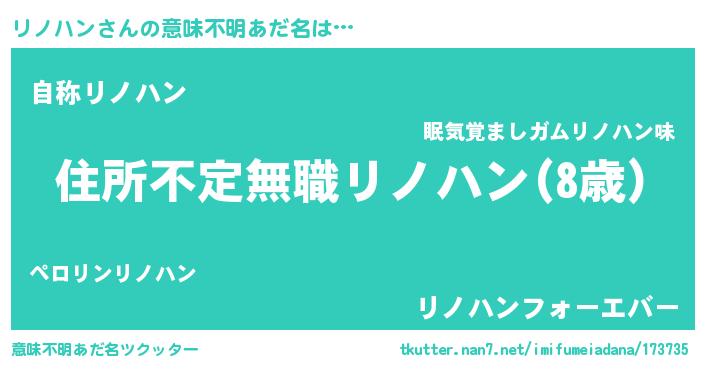 | 男性向けラノベタイトル風あだ名 | 『リノハンに滅ぼされるだけの簡単なお仕事です』 |