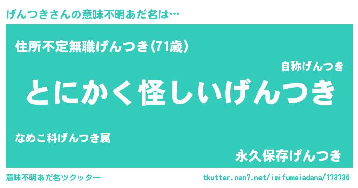 | 欧米人風あだ名 | 『げんつき・ステッグマイヤー』 |