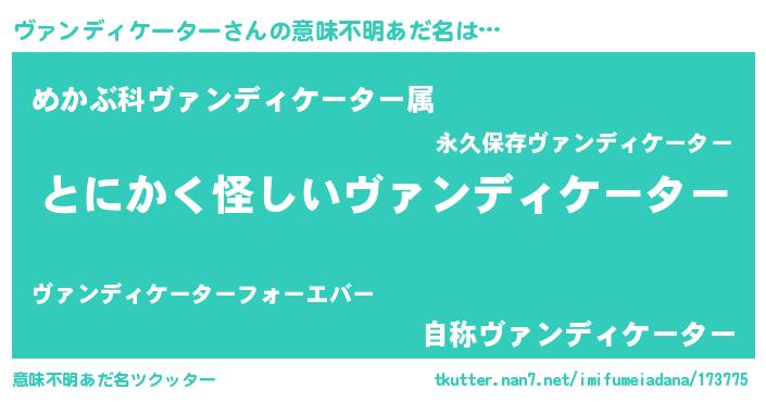 | 男性向けラノベタイトル風あだ名 | 『ダンジョンにヴァンディケーターを求めるのは間違っているだろうか』 |