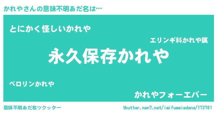 | ヘコむあだ名 | 『かれや(苦笑)』『かれぷりん』 |