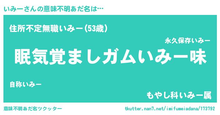 | ヒーロー風カッコイイあだ名 | 『正義の使者いみー』『仮面イミダー』 |