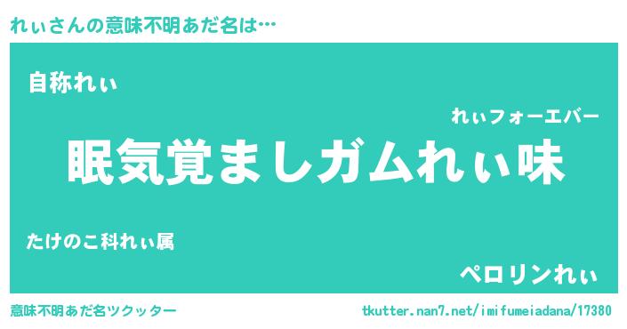 | ヒーロー風カッコイイあだ名 | 『正義の使者れぃ』『サイバー戦士レィ』 |