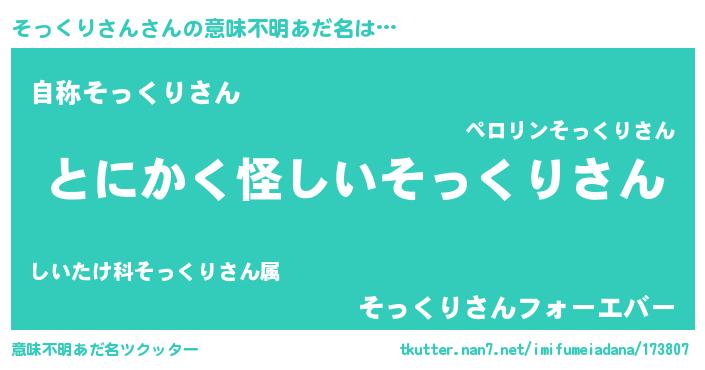 | ヒーロー風カッコイイあだ名 | 『天弓騎士ソッ』『最強戦士ソックリサン』 |