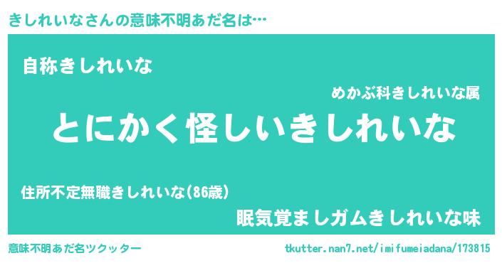 | 男性向けラノベタイトル風あだ名 | 『きしれいなの嫁は女の子じゃないと思った?』 |