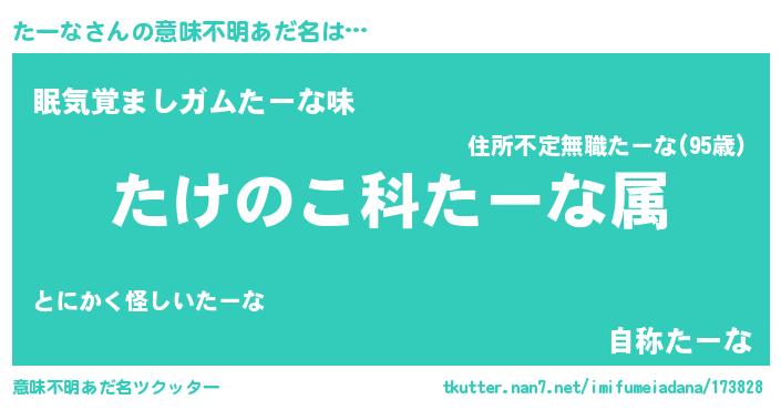 | 男性向けラノベタイトル風あだ名 | 『転生したらたーなだった件』 |