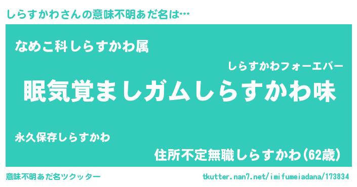 | ヒーロー風カッコイイあだ名 | 『愛の使者しらすかわ』『仮面シラダー』 |