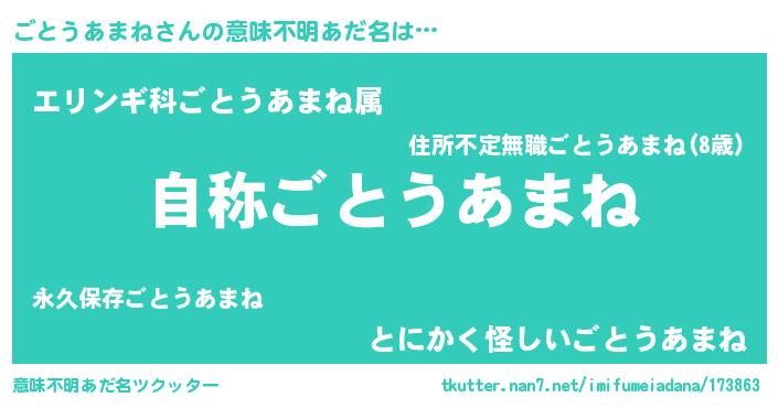 | 欧米人風あだ名 | 『ケンブリッジごとうあまね』 |