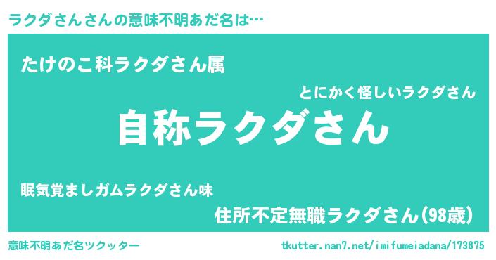 | ヘコむあだ名 | 『ラクっ子』『つくし』『ラクにゅー』 |