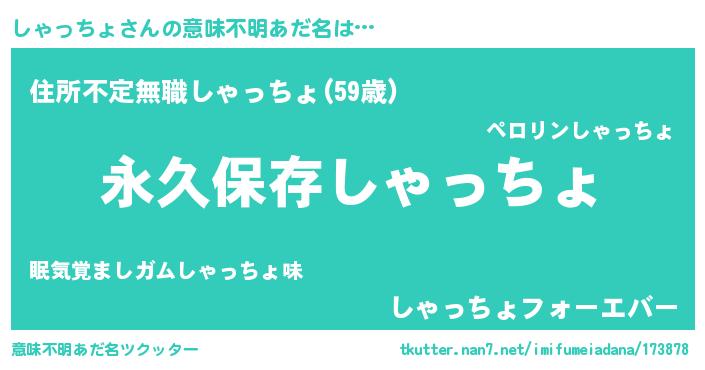 | 伝説のあだ名 | 『古文書に記された勇者しゃっちょ』 |