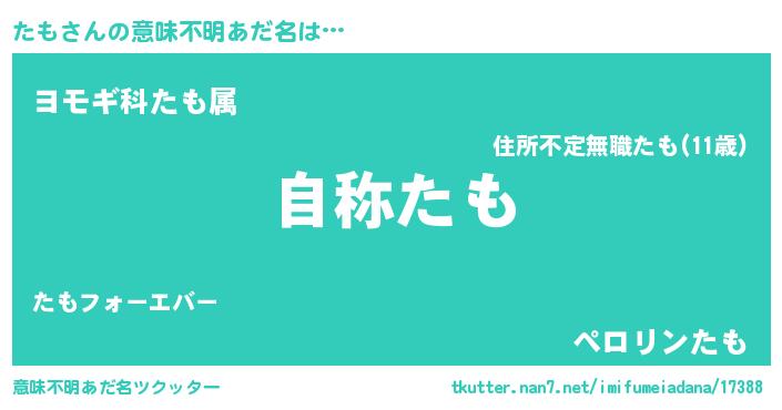 | 女子向けラノベタイトル風あだ名 | 『たもストレイドッグス』 |