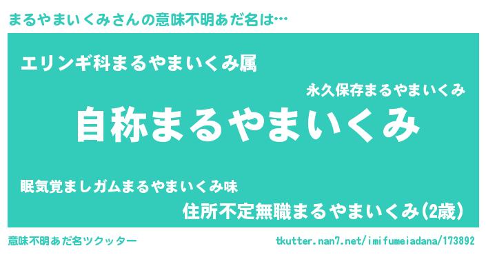 | 男性向けラノベタイトル風あだ名 | 『まるやまいくみに滅ぼされるだけの簡単なお仕事です』 |
