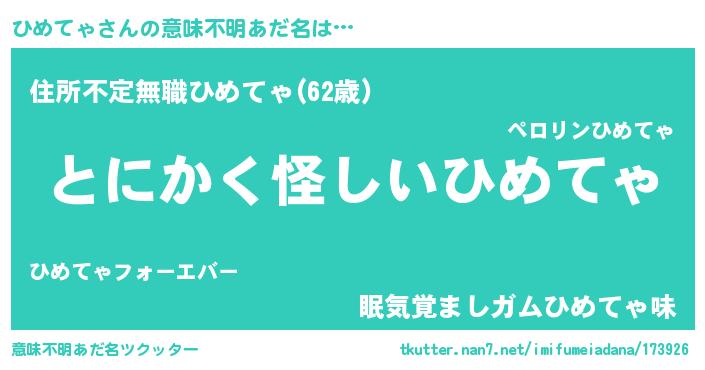 | 胡散臭い通販商品みたいなあだ名 | 『信頼と実績のサプリメント…その名も「ひめてゃ」』 |