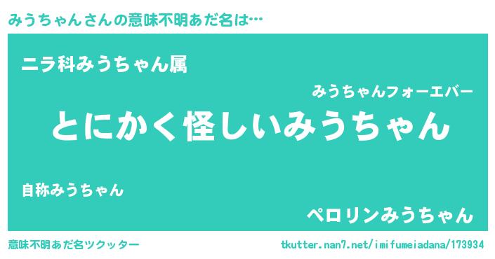 | ポケモン風あだ名 | 『ミウゴンZ』『ヒミウチャン』 |