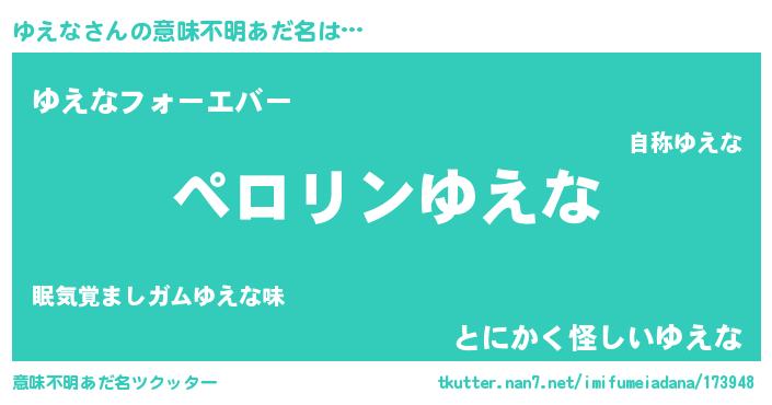 | 胡散臭い通販商品みたいなあだ名 | 『億万長者になれるブレスレット…その名も「ゆえな」』 |