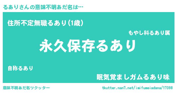 | ヘコむあだ名 | 『るあり(笑)』『るあぷりん』『豆乳』 |