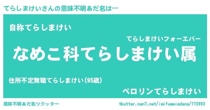 | 欧米人風あだ名 | 『アンジェラ・てらしまけい』 |