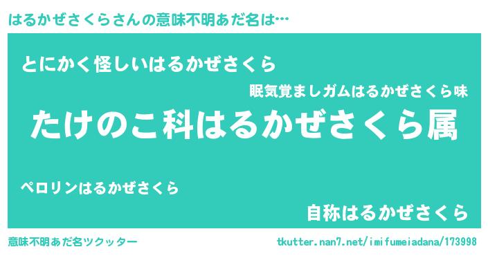 | 男性向けラノベタイトル風あだ名 | 『転生したらはるかぜさくらだった件』 |