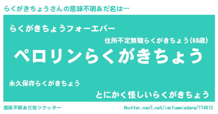 | 胡散臭い通販商品みたいなあだ名 | 『億万長者になれるブレスレット…その名も「らくがきちょう」』 |